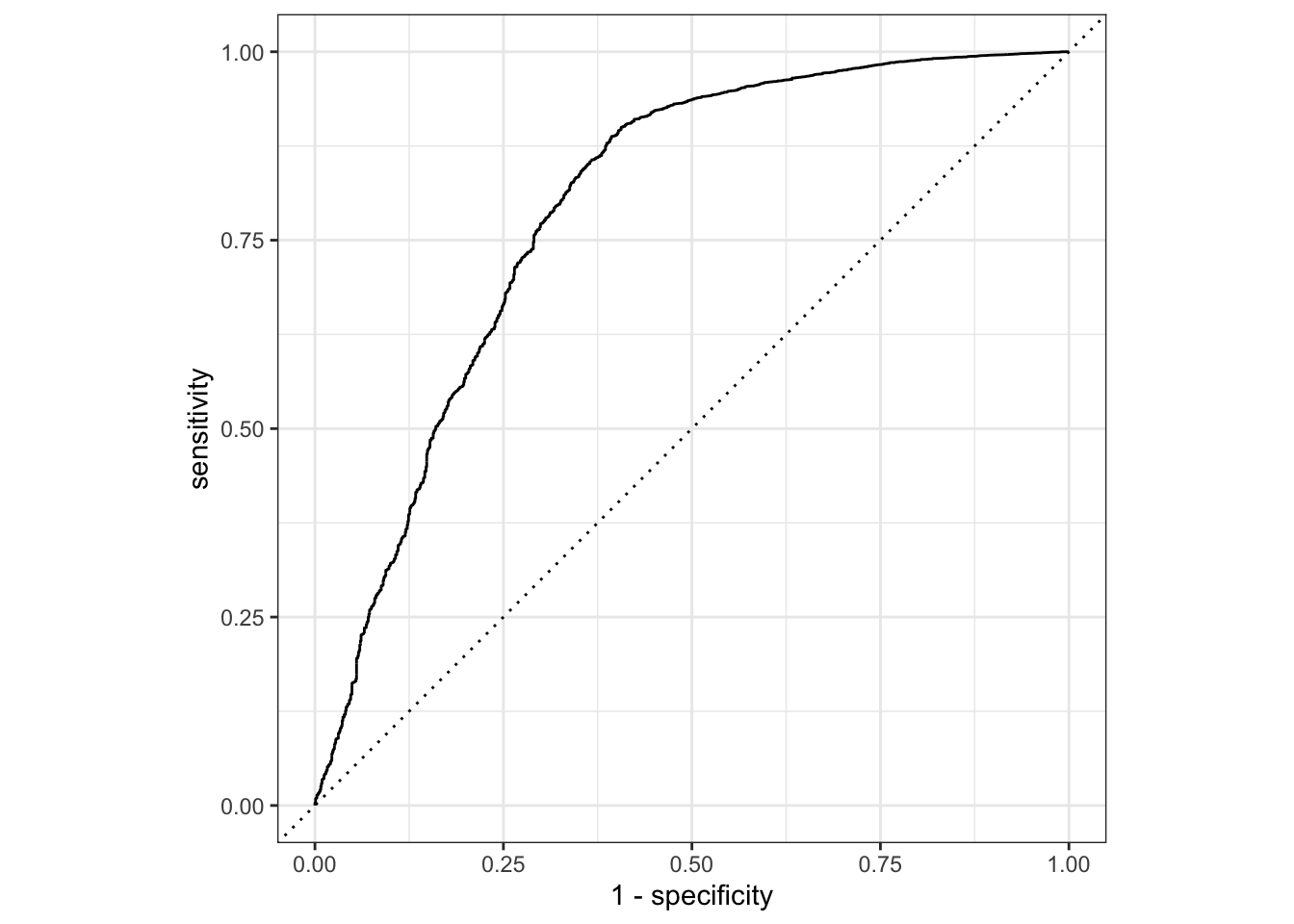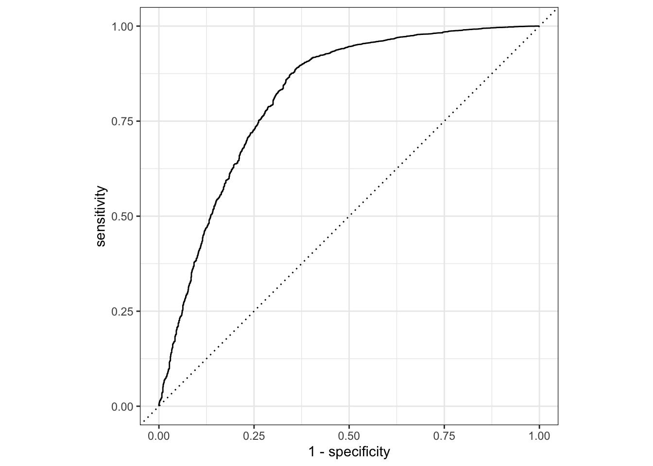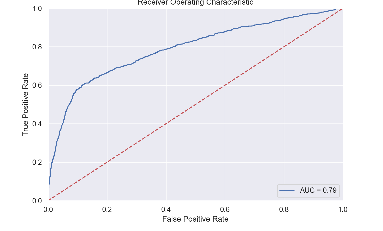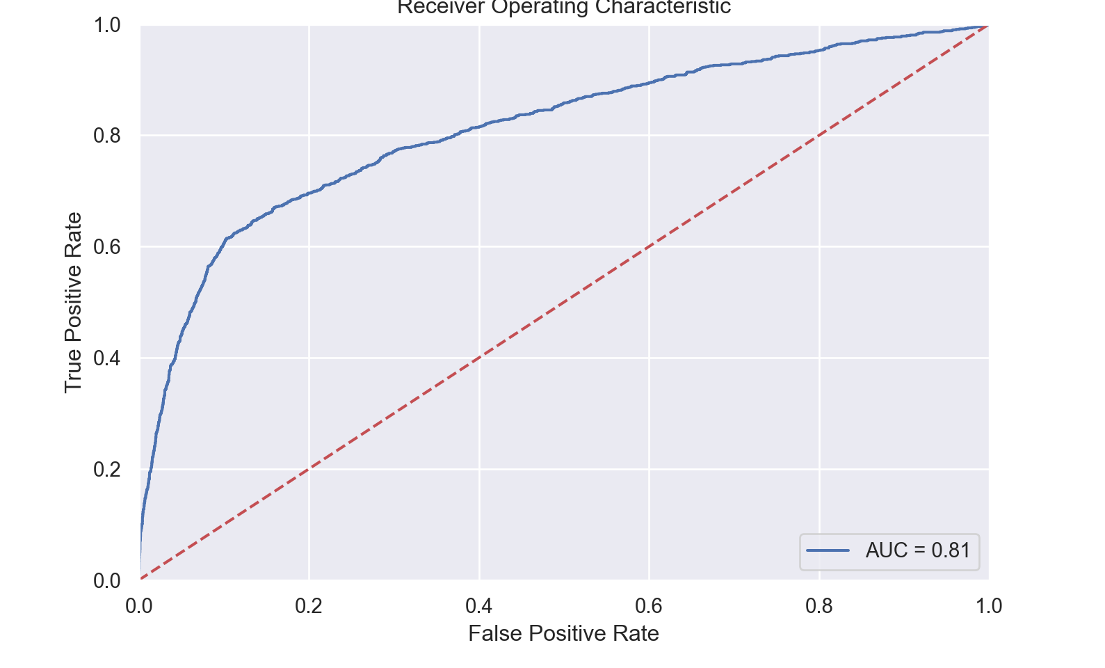 print ('ROC AUC Score',roc_plot(X_trans_test,y_trans_test, fitted_model, 1))ROC AUC Score 0.8105681566276057