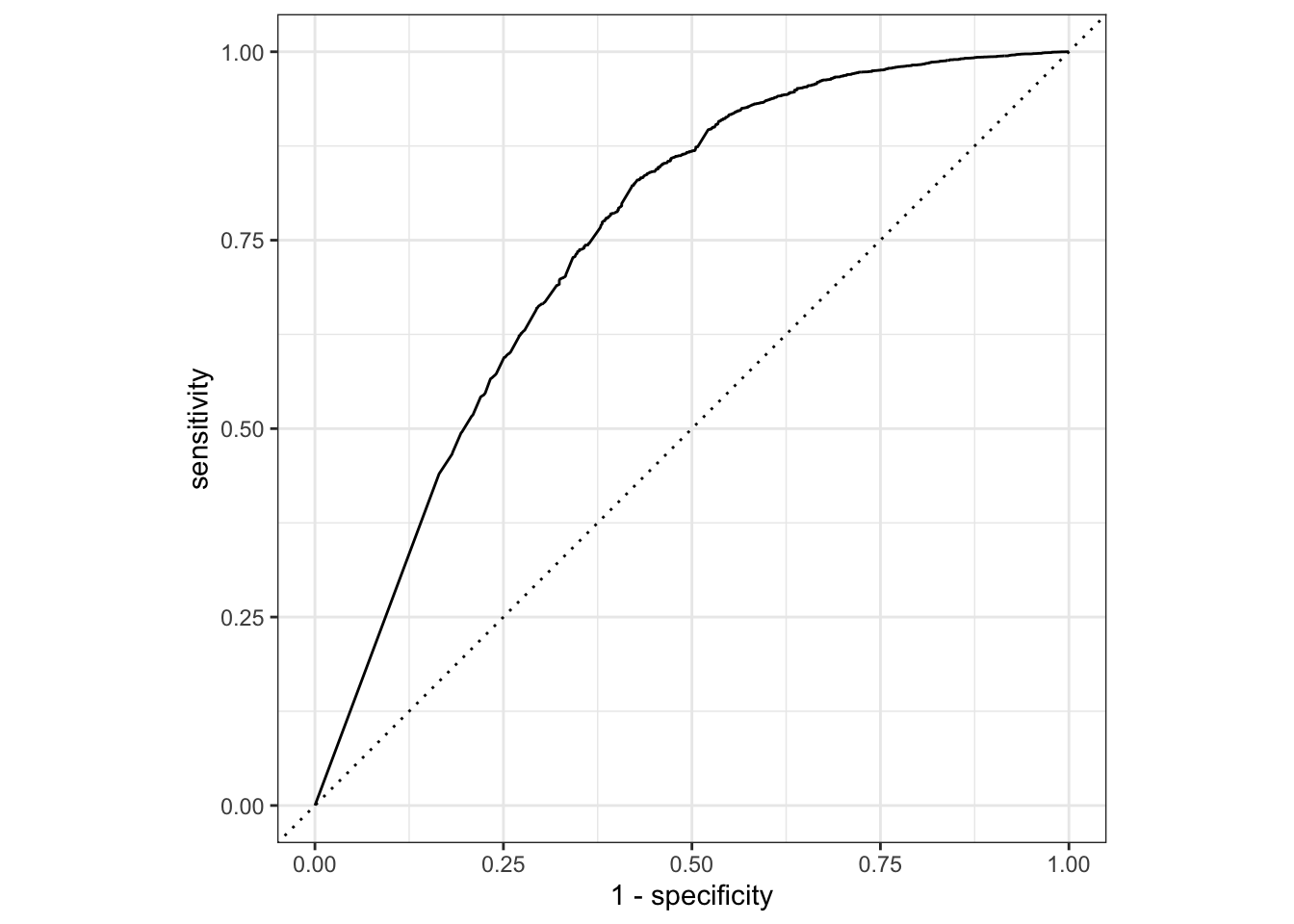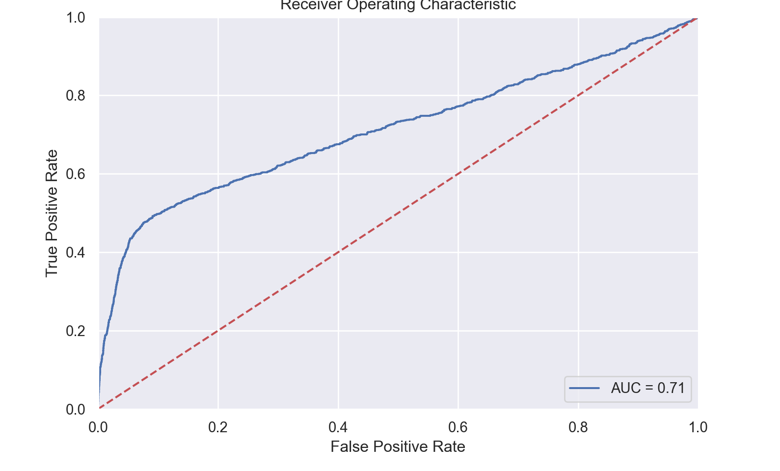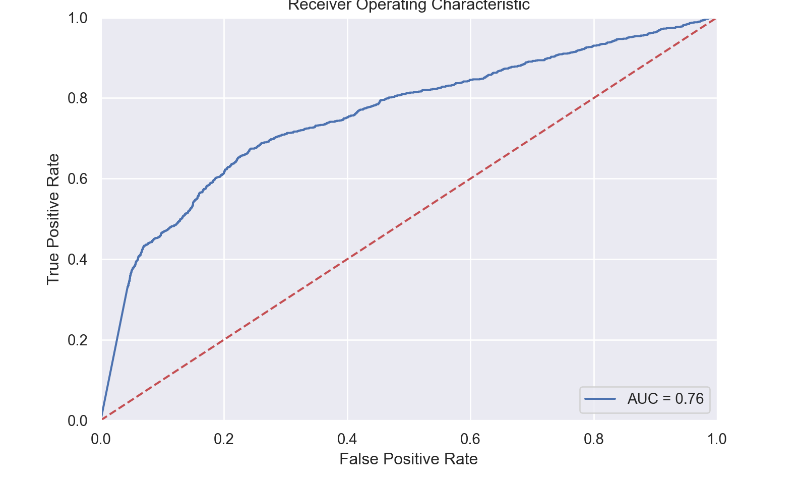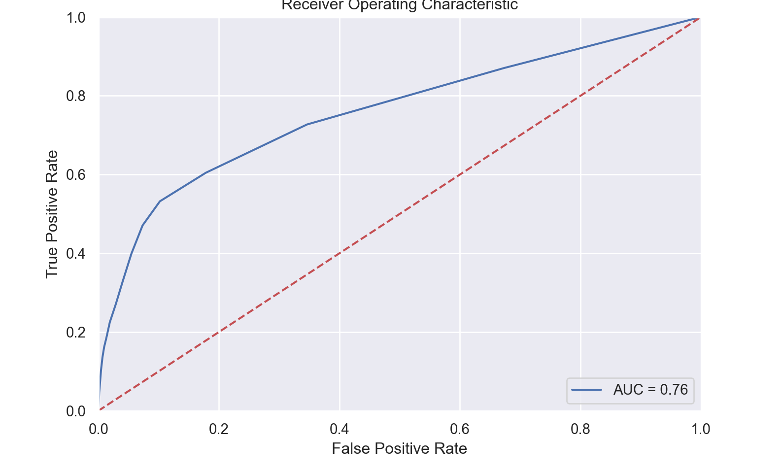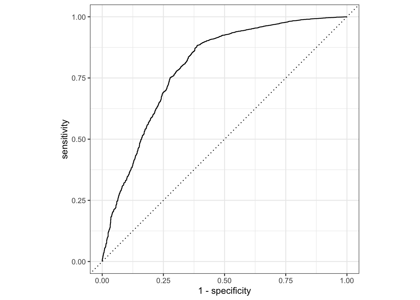 print ('ROC AUC Score',roc_plot(X_trans_test,y_trans_test, fitted_model, 1))ROC AUC Score 0.8105681566276057