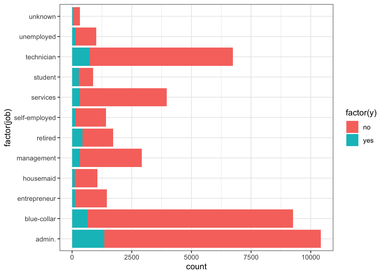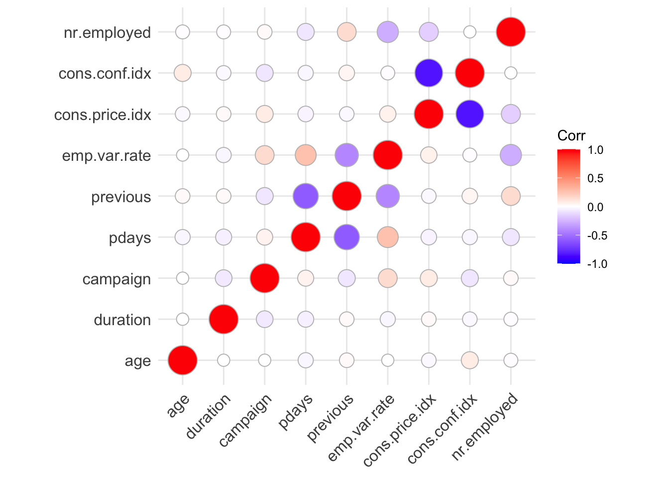 knitr::kable(slice_sample(data_bank_marketing, n=10))| age | job | marital | education | default | housing | loan | contact | month | day_of_week | duration | campaign | pdays | previous | poutcome | emp.var.rate | cons.price.idx | cons.conf.idx | euribor3m | nr.employed | y |