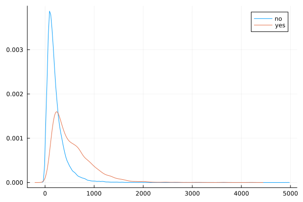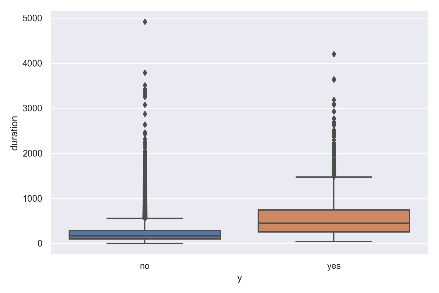 | duration | numeric | last contact duration in seconds. The duration is not known before the call, so even though this has a strong impact on outcome (duration=0 => y=0), it should be discarded from the model |