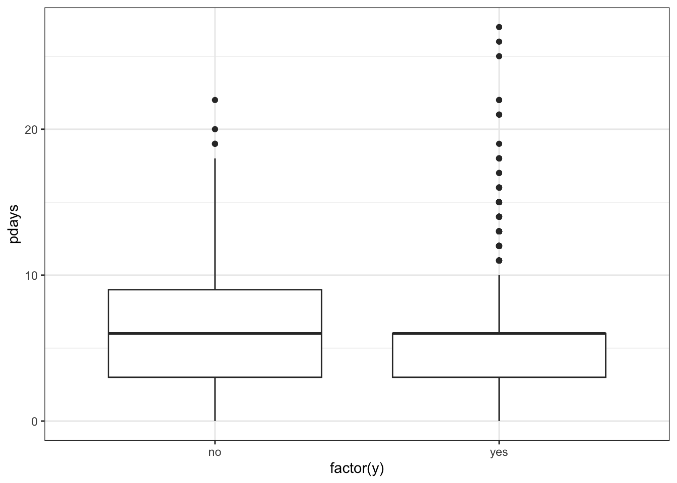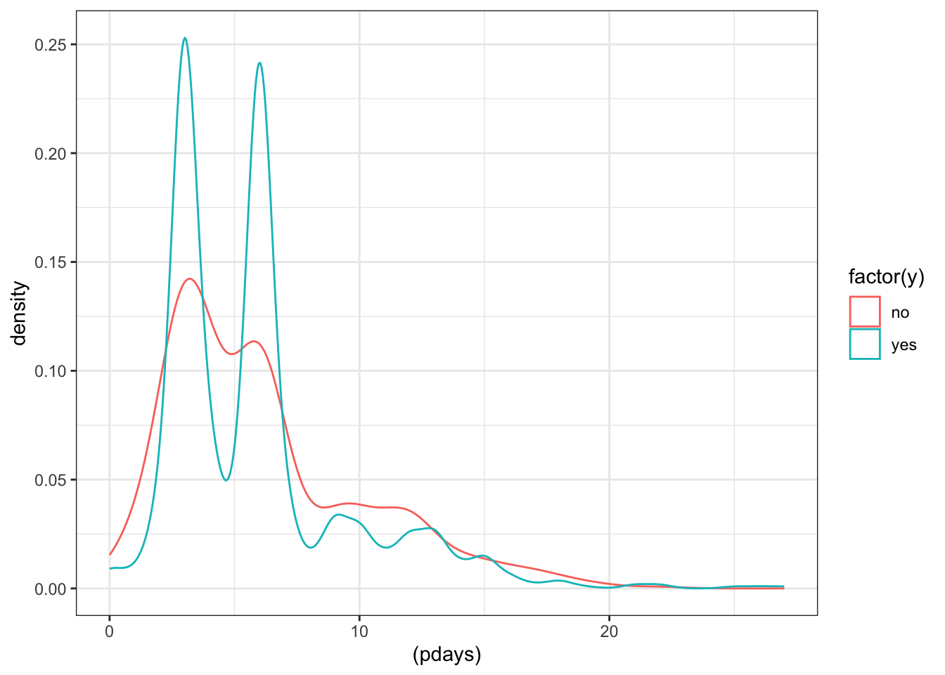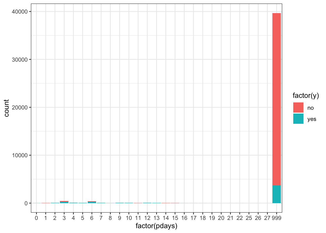 | pdays | numeric | number of days passed since client was contacted since the client was last contacted from a previous campaign. 999 means not previously contacted |