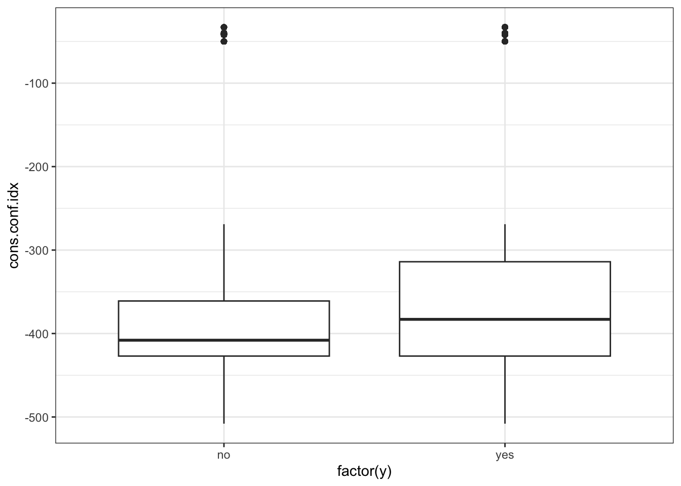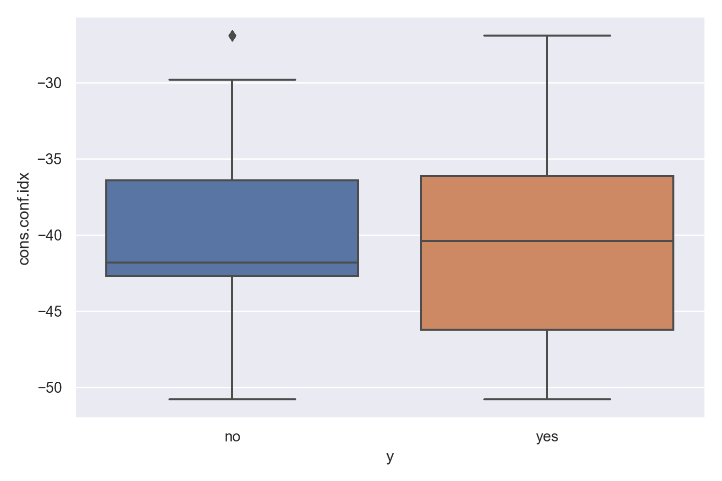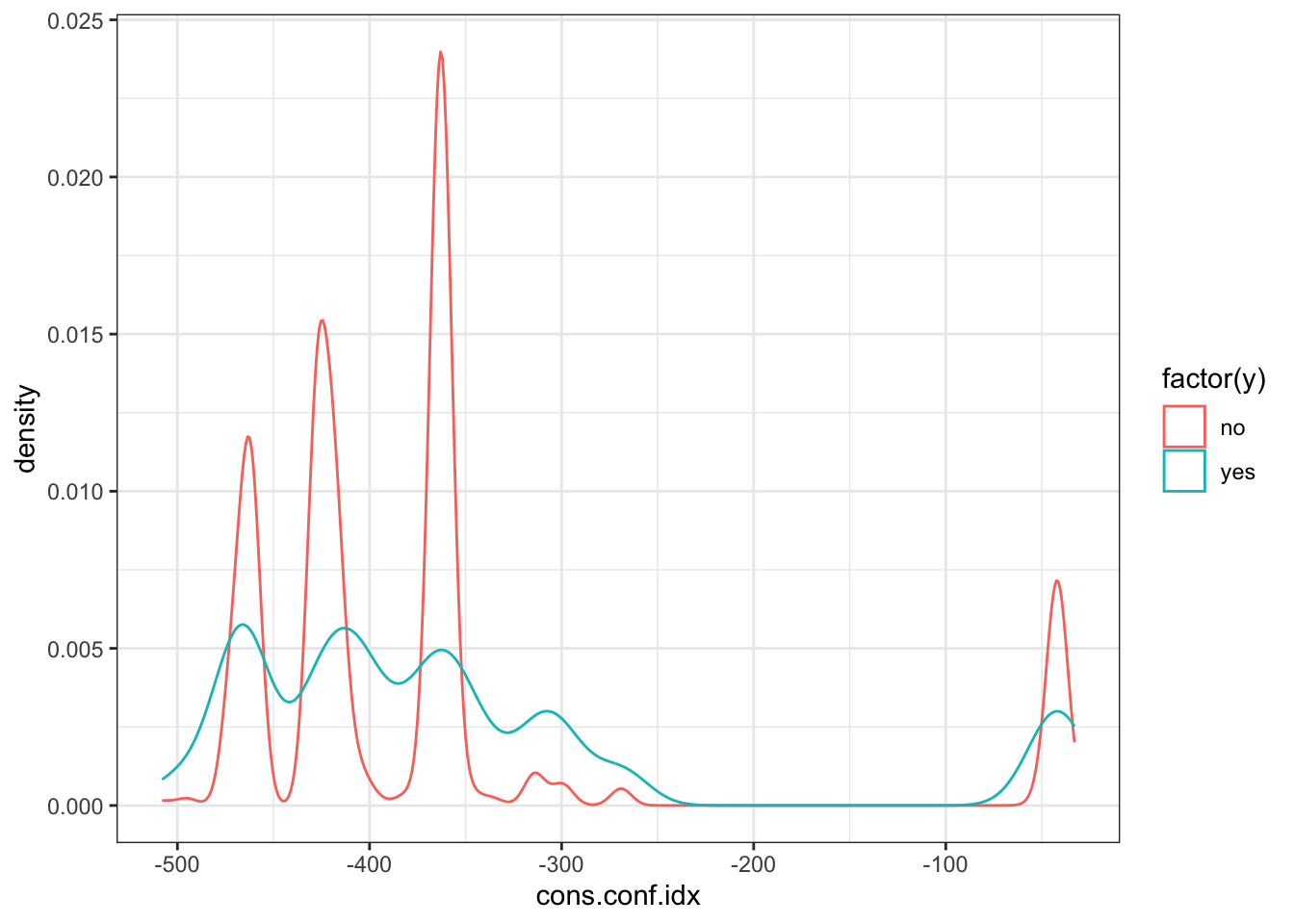 | cons.conf.idx | numeric | consumer confidence index - monthly indicator |