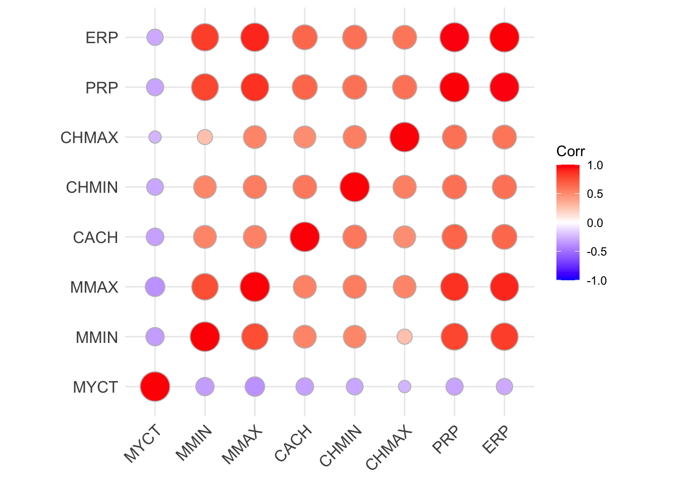 knitr::kable(slice_sample(data, n=10))| Vendor | Model | MYCT | MMIN | MMAX | CACH | CHMIN | CHMAX | PRP | ERP |