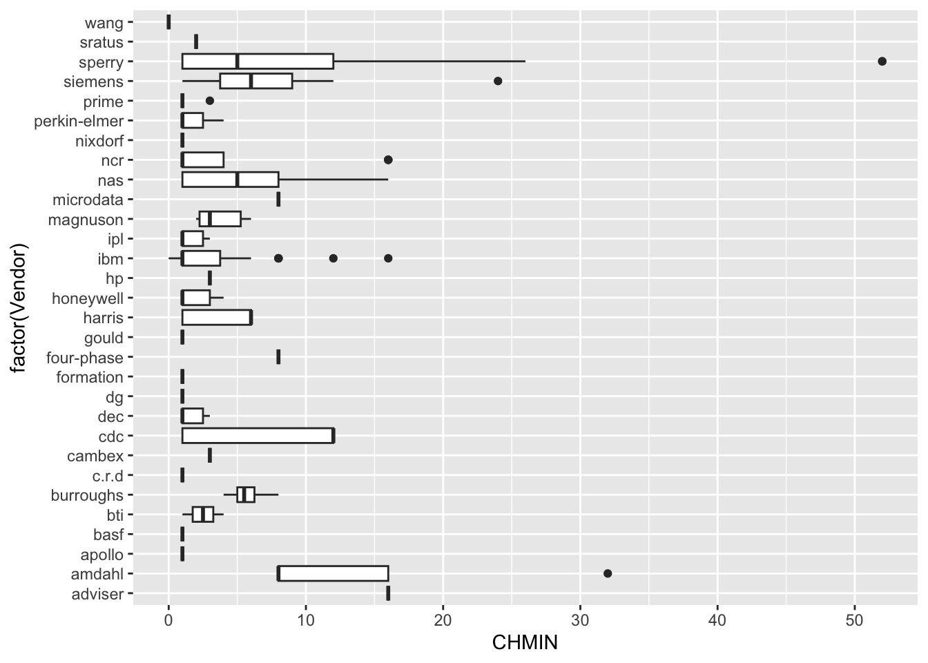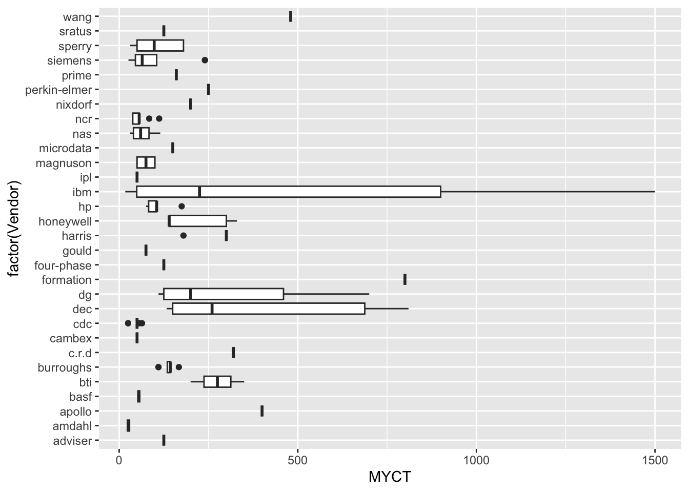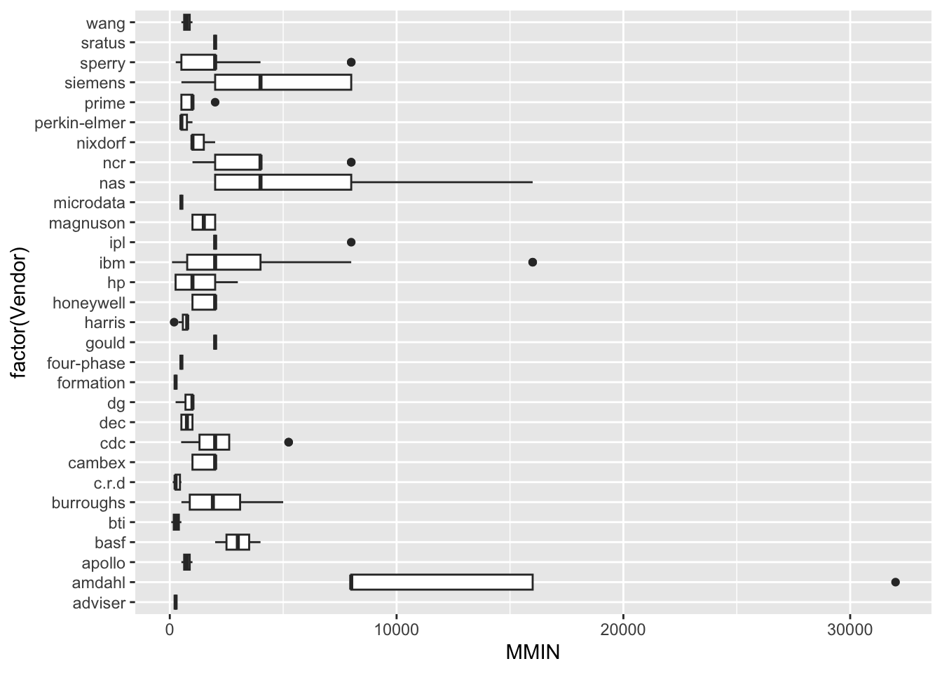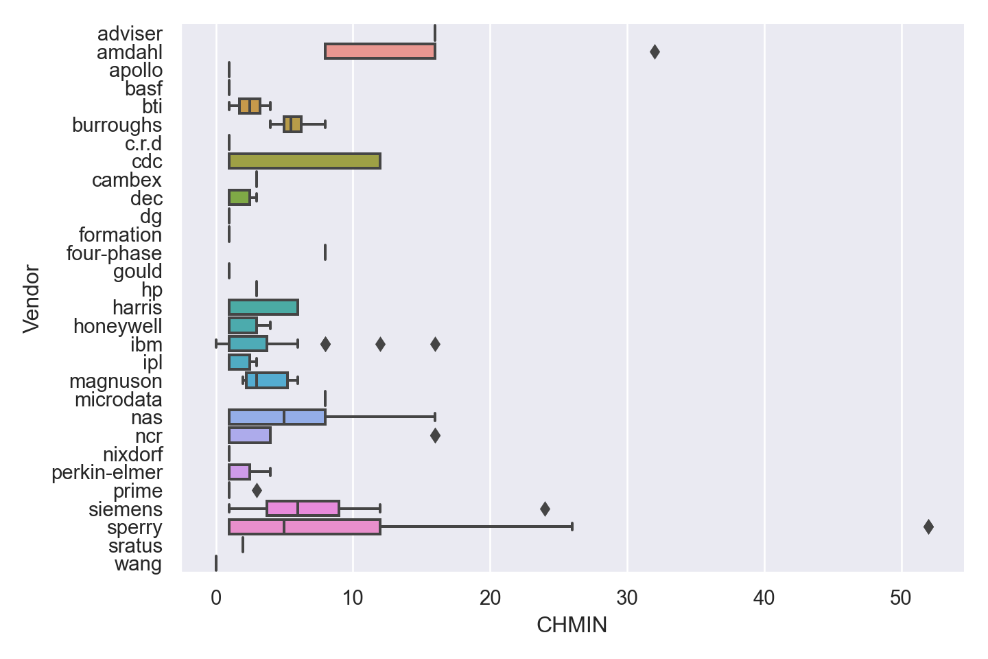 dsp.Markdown(sample.to_markdown(index=False))| Vendor | Model | MYCT | MMIN | MMAX | CACH | CHMIN | CHMAX | PRP | ERP |